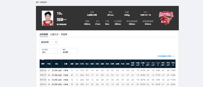 刘泽一的身高只有2米01,臂展2米03,这个身体条件去打四或五号位,很难占据静态上的优势,也就是上限不高。