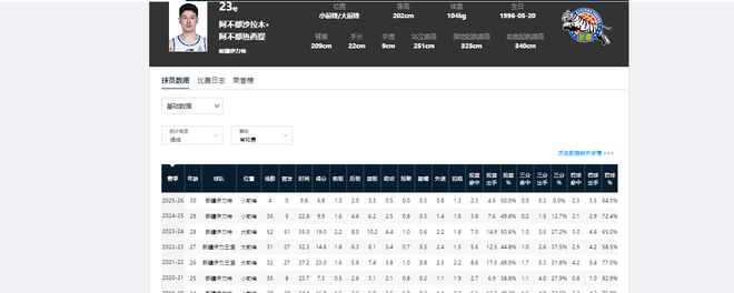 阿不都沙拉木曾两个赛季荣获最具进步球员奖,一次常规赛MVP。不过,从24-25赛季开始,阿不都沙拉木的场上表现,比赛数据开始断崖式下滑。这也是他无交易市场的原因之一。
