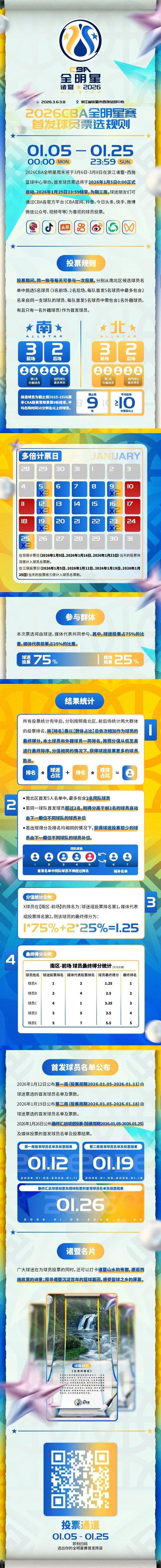 CBA全明星周末 投票进行时!2026年CBA全明星赛首发阵容投票火热进行中!这是属于所有球迷的舞台,为咱们的兄弟投上宝贵一票!无论是前场强攻还是后场组织,把你最支持的球员选进首发