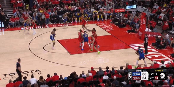 库里进攻被推倒没哨紧接着库里防守狄龙被吹犯规有点无奈