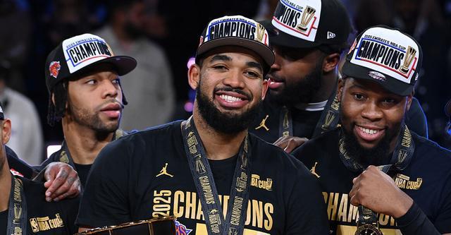 尼克斯将会在纽约主场麦迪逊广场花园升起NBA杯冠军旗帜,对此唐斯也感慨道:“这座奖杯对我们意义非凡,我们夺得了杯赛冠军,如愿穿上这件印着‘尼克斯’队名的冠军T恤,这对我们来说是至高的荣誉。”