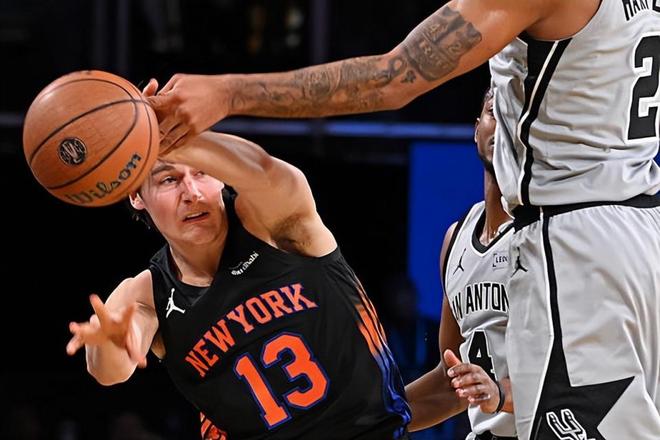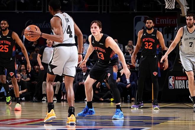 在此前的NBA杯决赛中,纽约尼克斯在末节完成了大逆转,以124比113战胜了圣安东尼奥马刺,成功拿到了本次NBA杯的总冠军。本场比赛中,尼克斯的替补控卫泰勒-科莱克(Tyler Kolek)的表现
