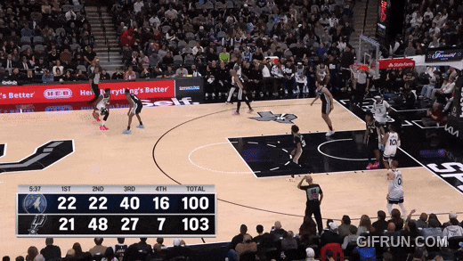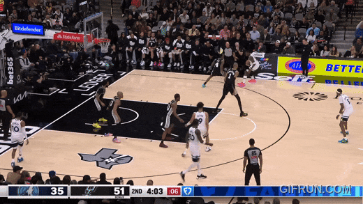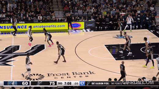 还是马刺最快的福克斯来跟华兹,被华兹迎面强投:干扰不到。