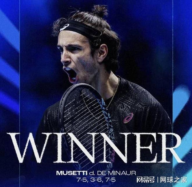 果然不出阿尔卡拉斯所料,最后时刻幸运入围年终总决赛的穆塞蒂,倍加珍惜来之不易的机会,首场小组赛两盘不敌去年年终总决赛亚军弗里茨之后,就在第二场小组赛中发挥出色,三盘力克澳大利亚小野兔德-米纳尔。