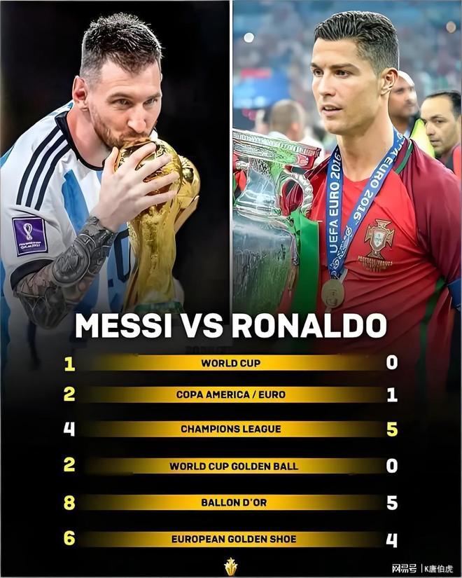 绝代双骄的争论真的没有答案吗?或许在很大程度上梅西已经胜出,尤其是那个遥不可及的世界杯冠军奖杯。1、金球奖:8:5(梅西无悬念胜出)对此奖项的讨论已经多次论述,有