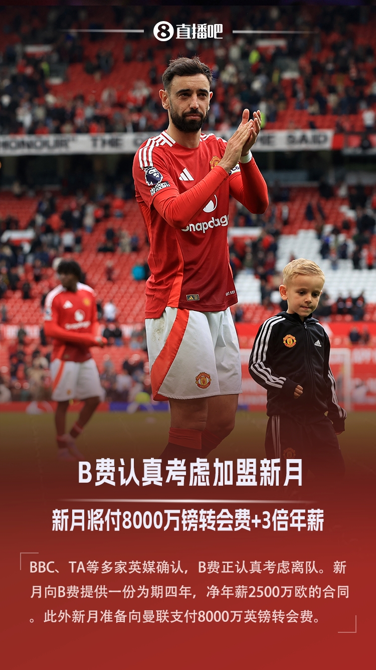 据匿名消息人士透露,利雅得新月向B费提供了一份为期四年,净年薪2500万欧的合同,相当于其目前薪水的三倍。此外据说新月准备向曼联支付8000万英镑的转会费。