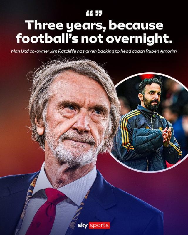 体坛周报全媒体报道曼联换帅?阿莫林辞职?这些担忧或者期待可以休已。曼联股东之一、目前竞技层面的实际掌门人拉特克利夫日前接受采访,明确表示将给足阿莫林3年时间,在曼联推行