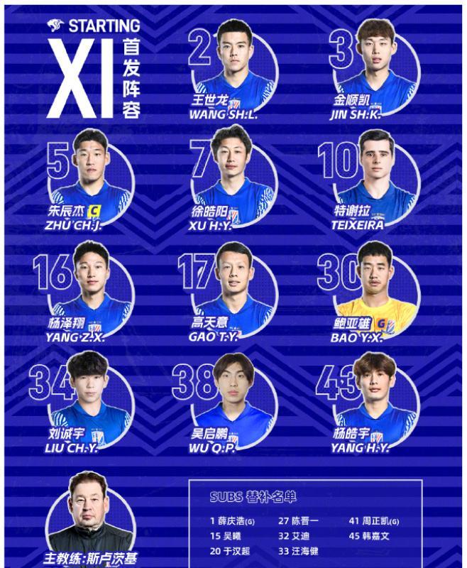 本场比赛,上海申花在首发上派出了30-鲍亚雄、2-王世龙、3-金顺凯、5-朱辰杰、16-杨泽翔、38-吴启鹏、7-徐皓阳、10-特谢拉(F)、17-高天意、43-杨皓宇、34-刘诚宇的阵容。