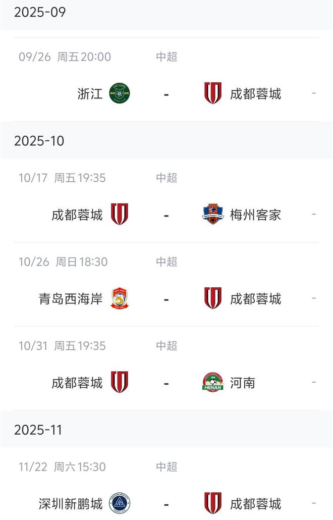 从对手实力来看,成都的赛程是三强中最轻松的。这些对手中既没有传统豪强,也没有直接争冠的竞争对手。