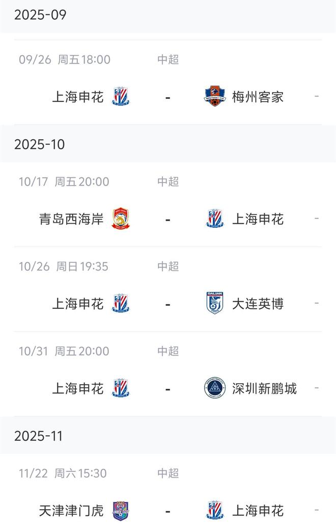 申花目前虽仅落后榜首3分,但和上港一样,相互战绩的劣势让他们必须在积分上反超成都蓉城才能够夺回榜首。他们剩余的对手包括梅州客家(主)、青岛西海岸(客)、大连英博(主)、深圳新鹏城(主)和天津津门虎(客)。