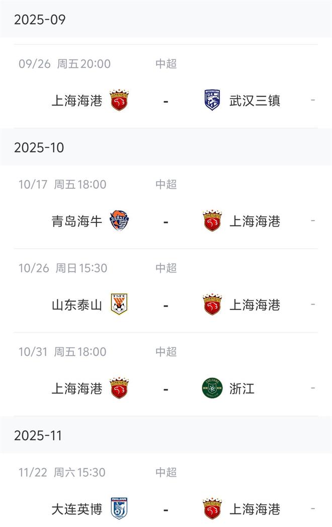 上港虽然积分与蓉城持平,但因相互战绩劣势屈居次席。他们的剩余赛程最为艰难:将迎战武汉三镇(主)、青岛海牛(客)、山东泰山(客)、浙江队(主)和大连英博(客)。